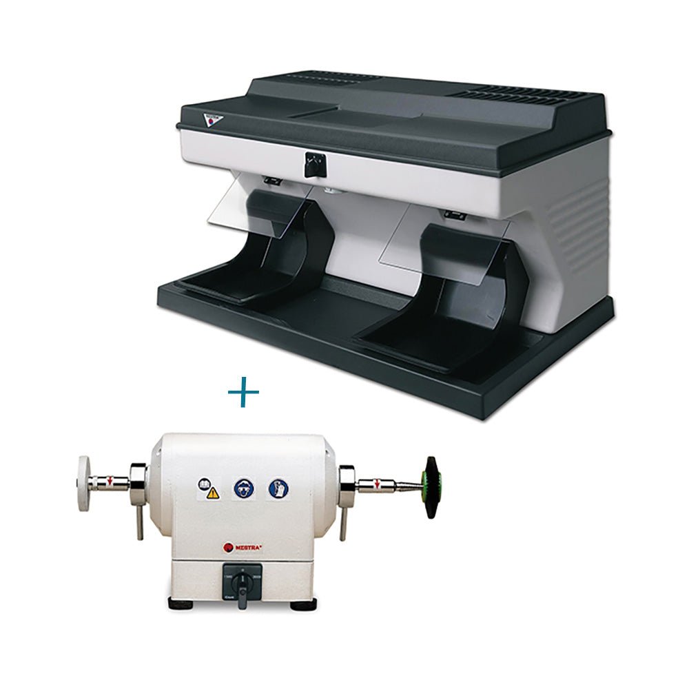Box de polissage équipé d’une aspiration avec filtres, d’un système d’éclairage, d'un puissant moteur à 2 vitesses, écrans de protection en polycarbonate et d’une prise de courant.